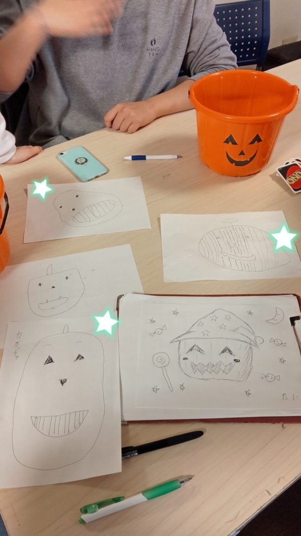 カボチャの絵をみんなで描いたり、、、