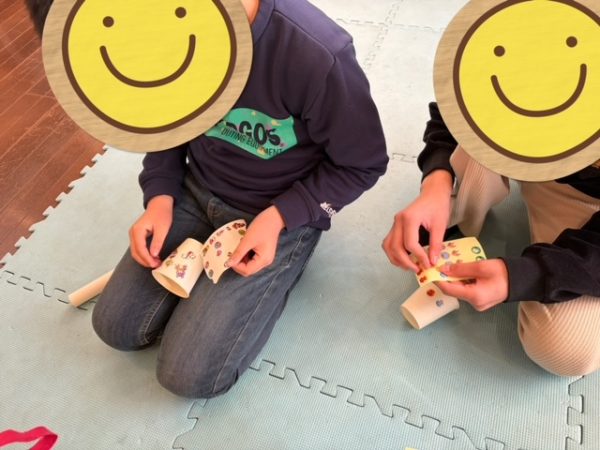1人1人コップの受け渡しができたところで今度はコップ飛ばしをしてみよう🛫